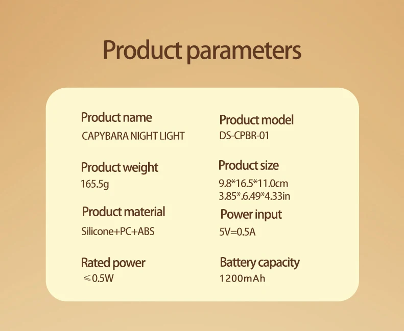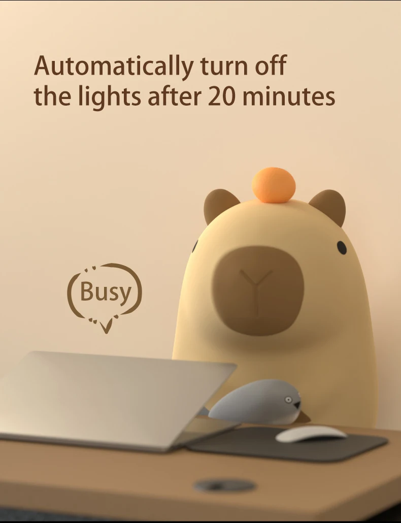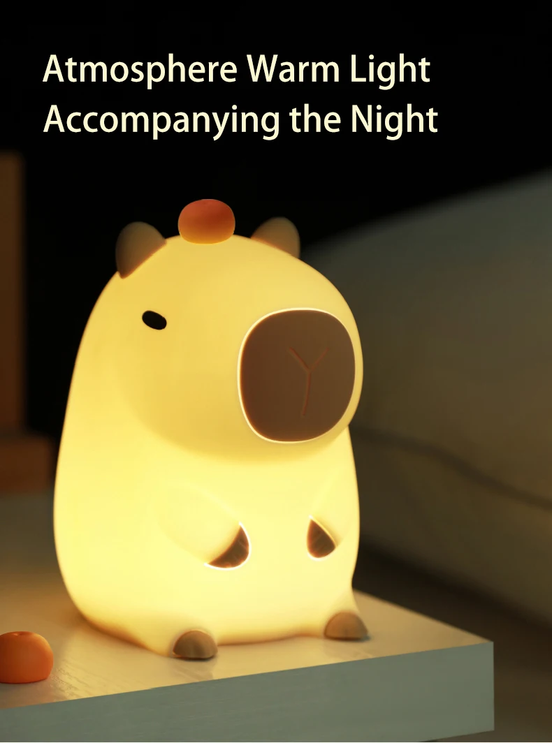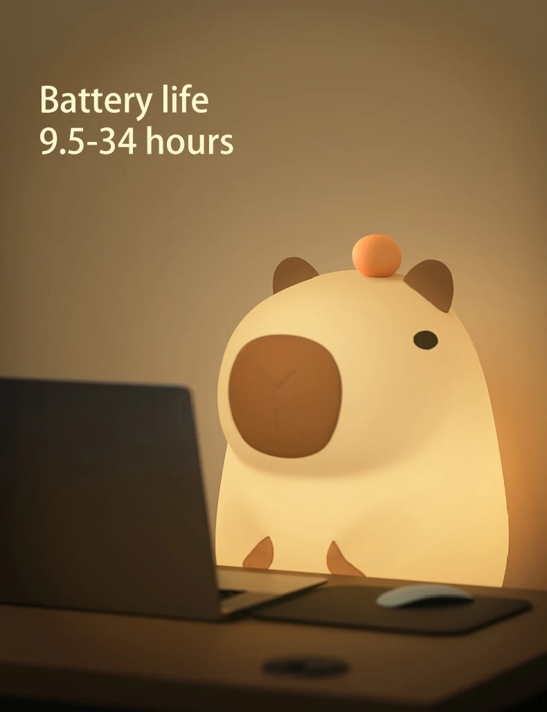 3.Material Silicone: This Capybara nightlight is made of high-grade silicone material for excellent durability and safety. Well-designed design to ensure long use.